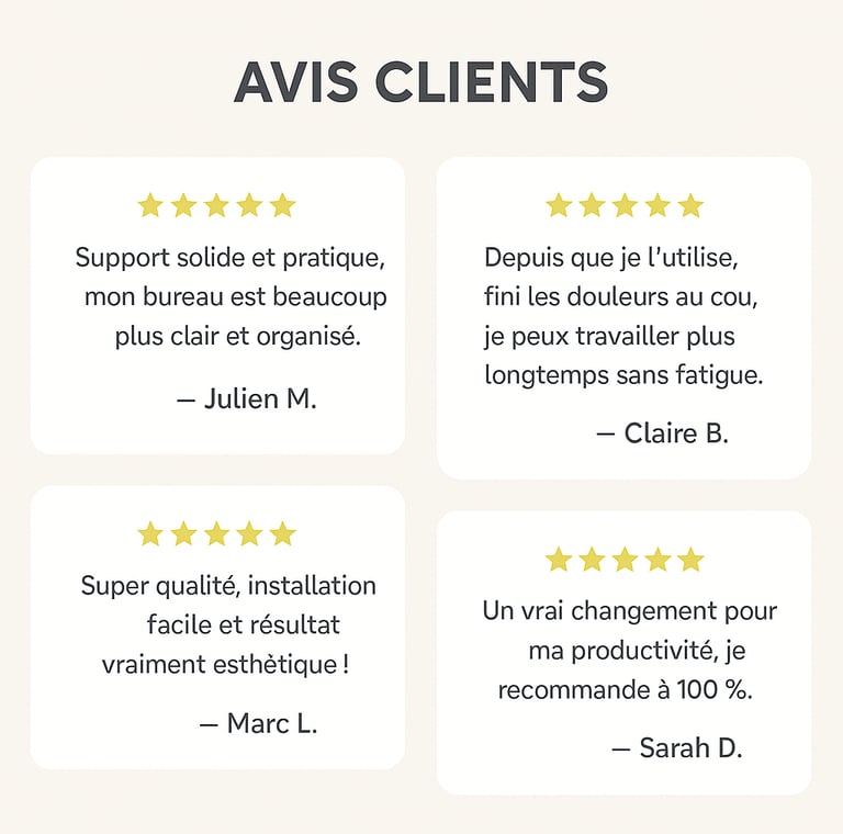 “Conçu pour l’élégance et la performance, notre support d’écran optimise votre quotidien au bureau.”